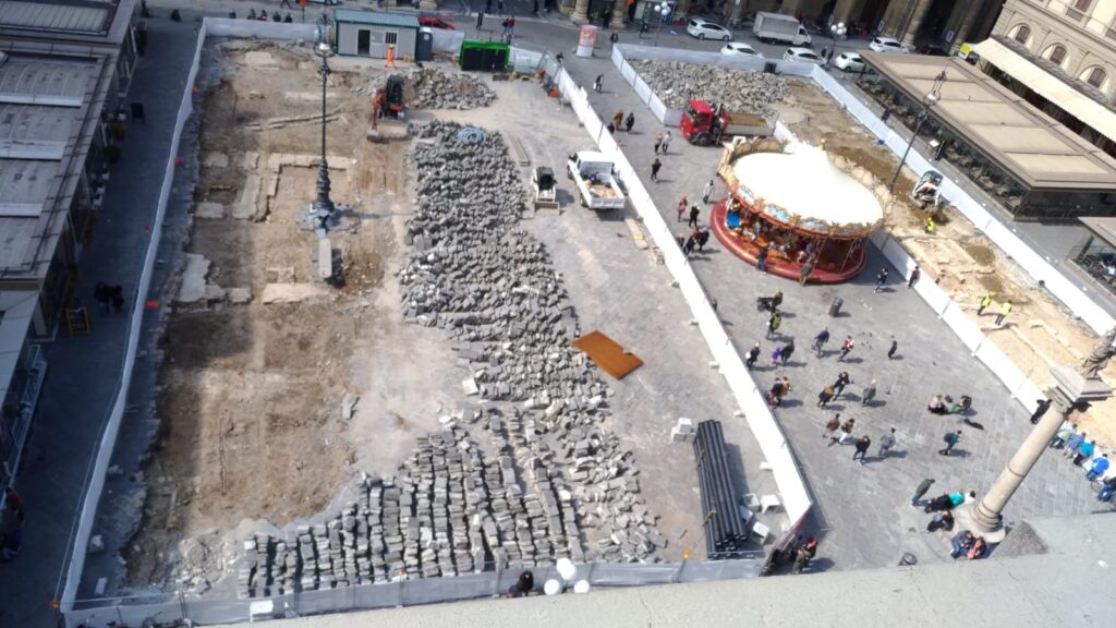 Piazza della Repubblica in Florence Ancient Roman colony “Florentia” has reemerged from beneath the 18th century stone pavement in Piazza della…