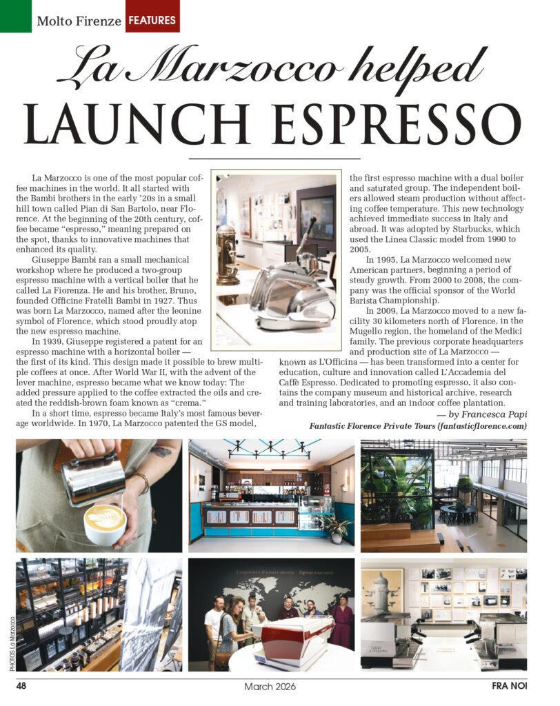 You can also check out my article about La Marzocco on the Italian-American magazine of Chicago Fra Noi, where I have my Molto Firenze column!