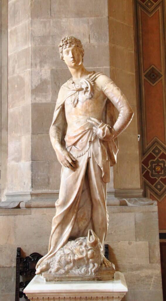 The religious characters of David and Judith are symbols of the XV- century Florentine Republic. They are mutual alter-egos: like the young and handsome David defeated the giant Goliath, enemy of Israel, thanks to his moral vigor and firm faith in God, the charming widow Judith, in the same way, won against the general of the Assyrian army, Holofernes, using shrewdness and beauty to make the will of the God. Donatello and Verrocchio are the authors of three statues of David slaughtering Goliath, today conserved at Museo Nazionale del Bargello (Florence’s sculpture museum). Donatello is also the sculptor who cast in bronze the masterpiece of Judith beheading Holofernes, today inside Palazzo Vecchio (Florence’s city hall). Michelangelo recovered the republican tradition of David, when he began his famed marble statue in 1502, which replaced Donatello’s Judith. In the interpretation given by Michelangelo, the handsome David represented the Republic of Florence resisting the attack of the giant Goliath, who embodied the boundless power of the Medici, recently exiled from Florence in the name of freedom. Don’t miss the chance of admiring Artemisia Gentileschi’s Judith and Holofernes at Uffizi Gallery and Michelangelo’s David at Accademia Gallery! Book my Your Day in Florence Tour now!